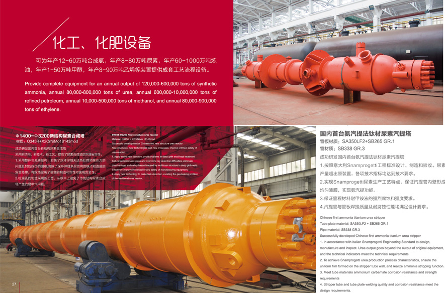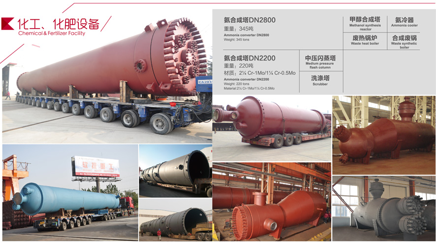 山東云蟻重工有限公司可為年產(chǎn)12-80萬噸合成氨,年產(chǎn)8-120萬噸尿素,年產(chǎn)1-50萬噸甲醇,為氯堿、泡花堿、 合成橡膠、PVC、聚乙烯、芳烴及乙二醇等裝置提供成套工藝流程設(shè)備。